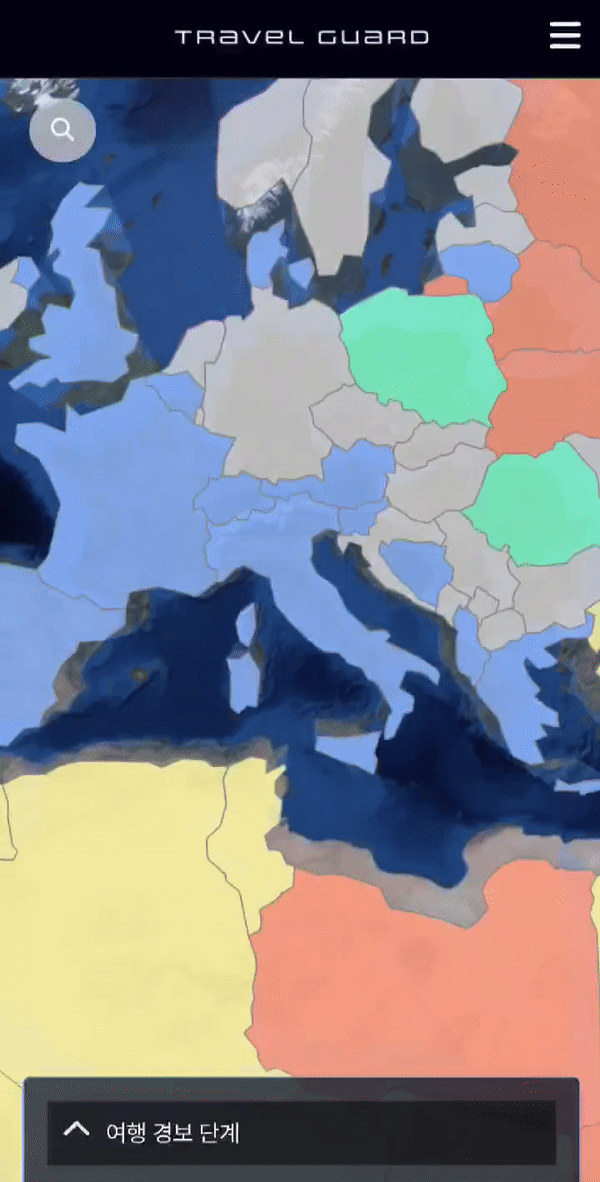 현재 마무리 진행 중인 Vite+TypeScript 프로젝트에서 react-globe.gl 라이브러리를 활용해 국가별 여행 위험 경보를 지구본에 표시하고 있습니다.
